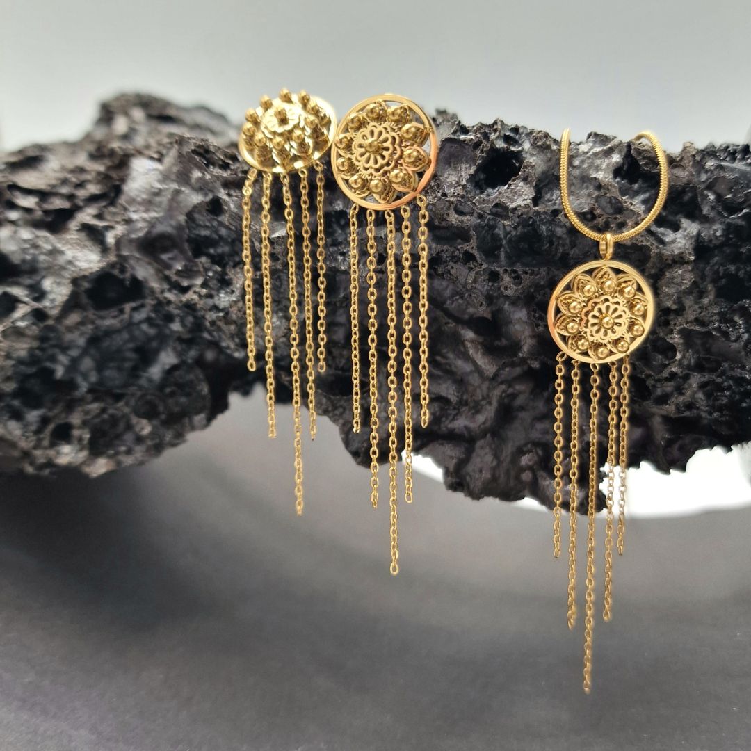 Gersemi eyrnalokkarnir eru framleiddir úr 316L læknastáli og er húðuð með 18k harðgyllingu. Harðgylling er með margfalt meiri endingu og léttari umhirðu. Þá tryggir hún hámarksvörn fyrir ofnæmi og tryggir mun meiri líftíma skarthúðar, fegurri gljáa og fallegri áferð. Þessi gylling er umhverfisvæn.