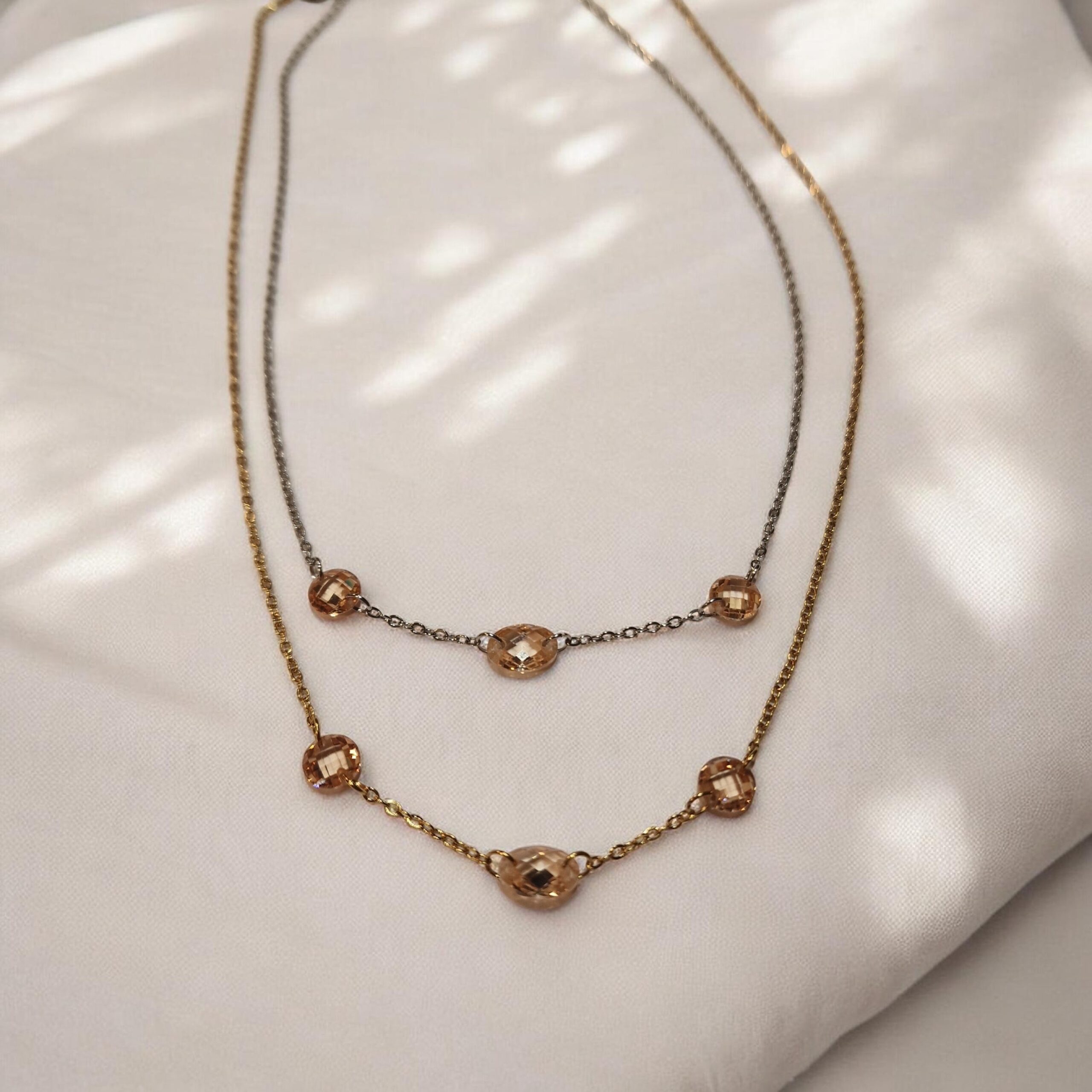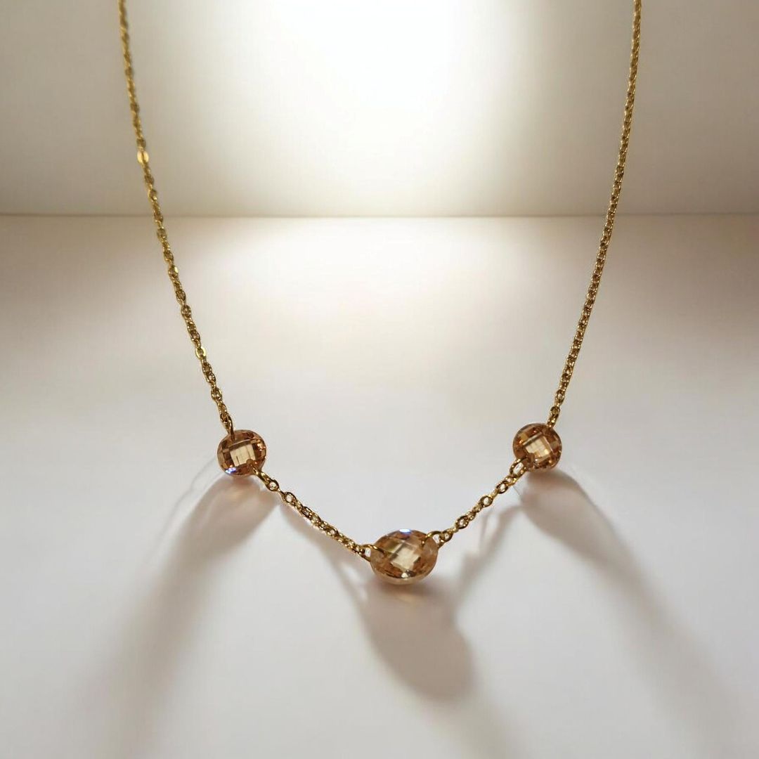 Glæsileg hálsmen með kampavínslituðum hágæða sirkóníusteinum.